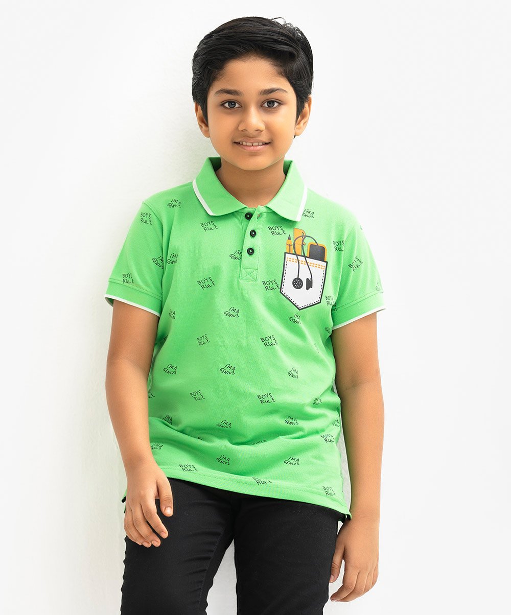 Kid boys short-sleeved casual shirt in printed cotton fabric. Classic collar and a chest pocket.